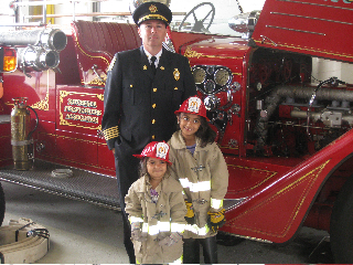 Kitchener Fire Chief Jon Rehill attended the Neighbours Day celebration at the Huron fire station. With him are Maleeha Kassam and Ruheena Kassam.